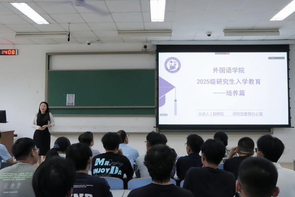 副院长赵婷廷教授针对学科设置及招生情况、研究生培养方案以及培养过程的主要环节等内容,为2025级新生进行了全面且细致的介绍与解读。她特别强调了培养过程中的关键环节和相关要求,期望助力新生们能迅速熟悉研究生各阶段的培养流程与注意事项。赵婷廷副院长还向同学们寄予殷切期望,鼓励大家秉持自信、认真、坚强、宽容的心态,勇敢迎接挑战,以“莫愁千里路,自到有风来”的豁达乐观开启研究生新征程。
