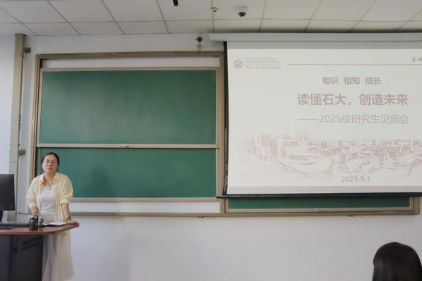 研究生辅导员梅琳聚焦学院管理架构与新生长远发展,以“读懂石大,创造未来”为主题,以“相识、相知、成长”为时间线,为新生系统梳理研究生三年成长路径,引导大家度过充实而有价值的校园生活。“相识”环节,梅琳老师通过具体案例数据,简述了学院近年在学位点建设、学术研究、人才培养等方面的成就,让新生深刻感受学院的学科实力与发展活力,增强归属感与认同感;“相知”部分,她详细介绍了学院研究生教育管理团队的构成与职责,清晰说明新生的生源结构、专业分布特点,同时全面解读学校及学院的奖助学金政策,帮助新生了解保障体系;“成长”篇章中,梅琳老师结合全国高校毕业生就业数据,客观分析当前就业市场面临的挑战,引发新生对未来发展的思考,并提出分阶段规划建议:一年级夯实基础、二年级聚焦科研、三年级对接职业目标,强调研究生需根据不同阶段特点,合理平衡学习、科研与实践,避免盲目规划。