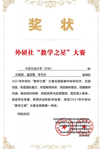 3. 刘媛媛,2021.06,外研社教学之星大赛全国复赛,省级一等奖