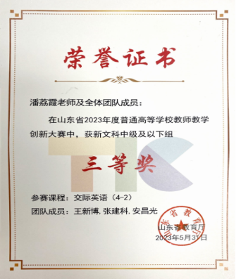 6.潘荔霞,2023.05,山东省2023年度普通高等学校教师教学创新大赛,省级三等奖