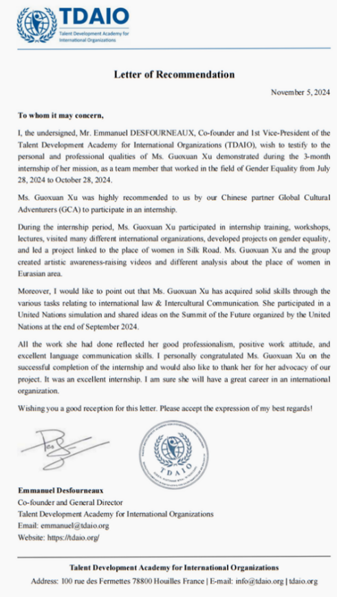 1.徐国璇,2024.07-10,TDAIO国际组织实习