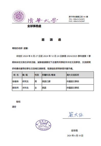 23.郭依然,2024.08-12,国立清华大学,境外交换学习