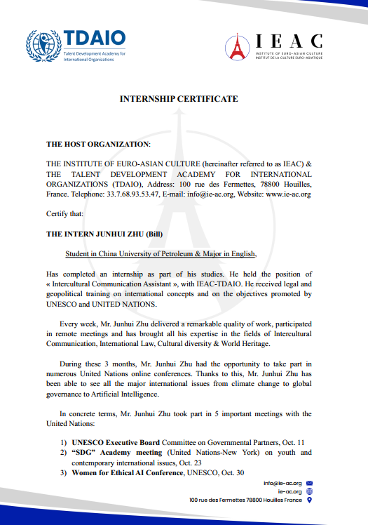 8.朱俊辉,2024.10-2025.01,欧亚文化研究所,国际组织远程实习项目