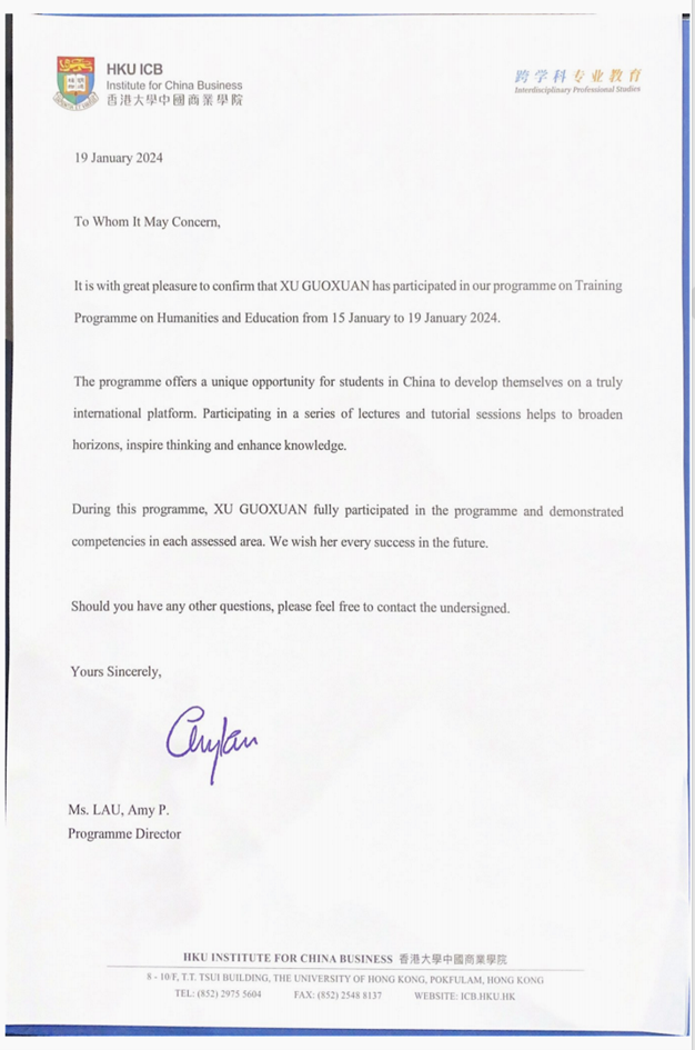 4.徐国璇,2024.01,香港大学中国商业学院,Training Programme on Humanities and Education