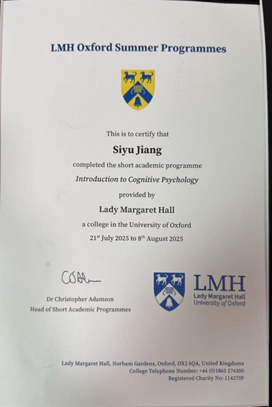 10.姜思语,2025.07-08,牛津大学,暑期学术交流项目
