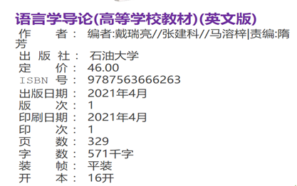 5.戴瑞亮、张建科,2021.04,语言学导论,中国石油大学出版社