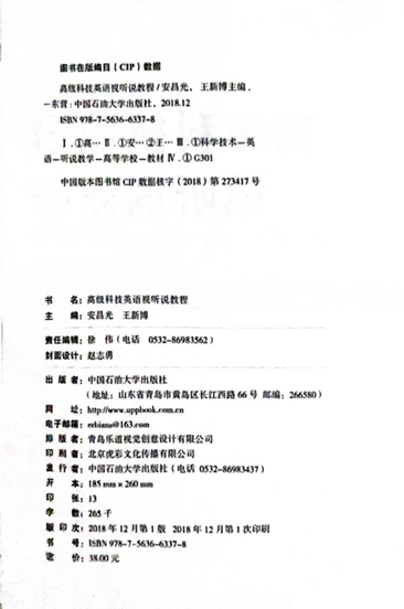 3.安昌光、王新博,2018.12,高级科技英语视听说教程,中国石油大学出版社