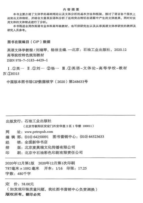 8.刘瑞琴、杨洁,2020.12,英语文体学教程,石油工业出版社