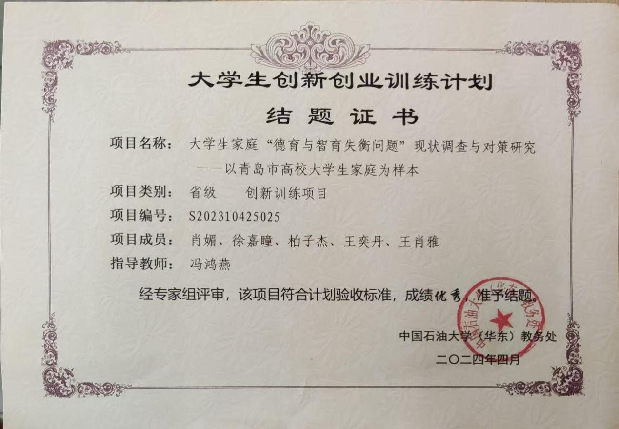 8. 省级:大学生家庭“德育与智育失衡问题”现状调查与对策研究—以青岛市高校大学生家庭为样本