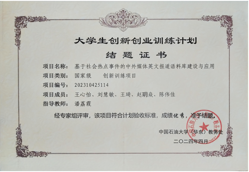 1. 国家级:基于社会热点事件的中外媒体英文报道语料库建设与应用