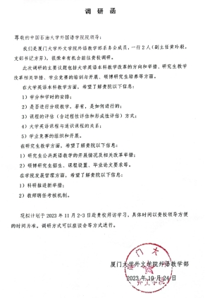 1. 厦门大学外文学院外语教学部 2. 中国矿业大学外国语言文化学院 3. 北京邮电大学人文学院 4. 北京工业大学太阳集团tcy8722网站 5. 南京理工大学太阳集团tcy8722网站 6. 上海海洋大学太阳集团tcy8722网站 7. 西南交通大学外语学院 8. 上海理工大学外语学院 9. 河南工业大学外语学院 10. 郑州大学太阳集团tcy8722网站 11. 华东理工大学太阳集团tcy8722网站