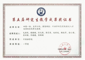 1 | 校级教学成果一等奖:四国一法,五升六化,数智赋能:外语学科急需高层次人才培养体系改革与实践 |