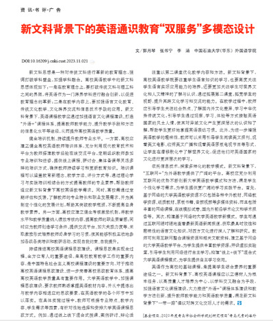 7 | 新文科背景下的英语通识教育“双服务”多模态设计(北大核心) |
