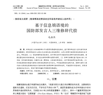 6 | 基于信息熵语境的国防部发言人三维修辞代偿(CSSCI) | |