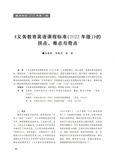 2 | 《义务教育英语课程标准(2022 年版) 》的拐点、难点与奇点(北大核心) |