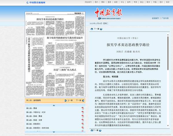 3. 《中国教育报》:探究学术英语思政教学路径