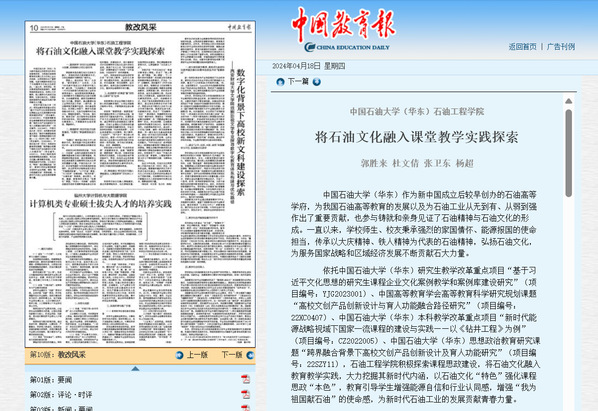 2.《中国教育报》:将石油文化融入课堂教学实践探索