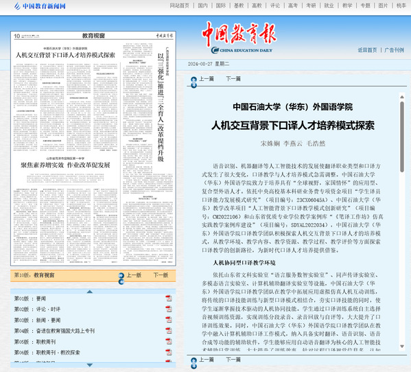 4. 《中国教育报》:人机交互背景下口译人才培养模式探索