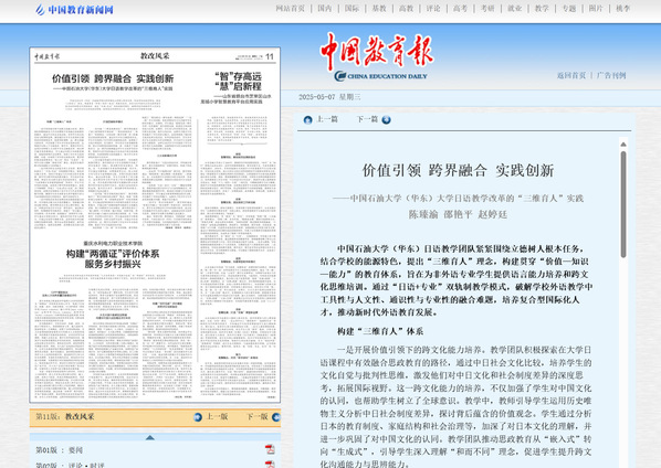 5. 《中国教育报》:价值引领、跨界融合、实践创新——太阳集团网址8722大学日语教学改革的“三维育人”实践